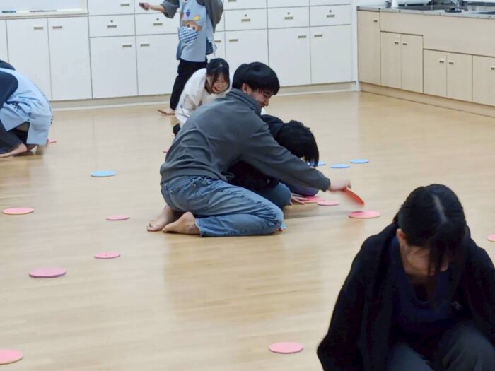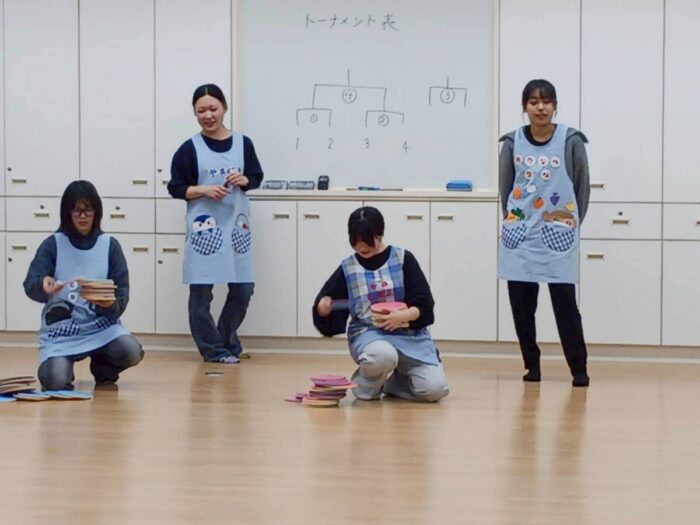 今回は、こども科の学生たちが作業療法科の学生さんたちに幼児の発達に合わせた遊びを教え、体験してもらうといった授業について紹介します。