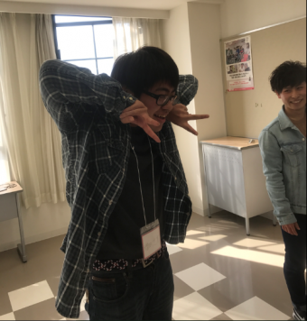2年生が考えた、ジェスチャーゲームには1年生の担任(中央)も参加しました。