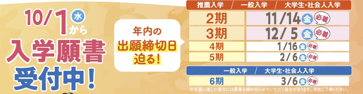 第二期入学願書受付中!